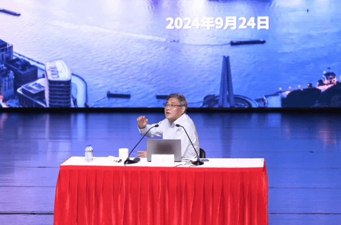 2024级国际关系与公共事务学院社会科学试验2班的谢慧爱提问,“当前中国应如何应对国际关系上的风险挑战以服务产业升级?作为‘五大中心’的上海如何贡献力量?”