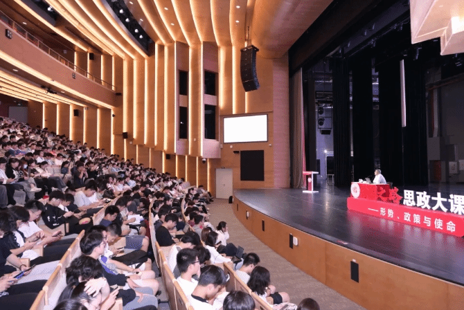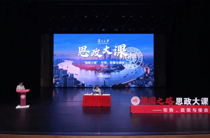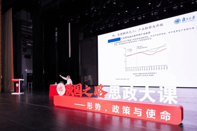9月24日下午,在相辉堂北堂,全国教学名师、复旦大学经济学教授、复旦大学就业与社会保障研究中心主任袁志刚开讲“强国之路”思政大课文科大类首场专题大课。