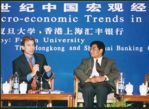 (图为2005年贝纳西教授(左)来访复旦大学并受邀参加汇丰论坛,右为袁志刚教授)